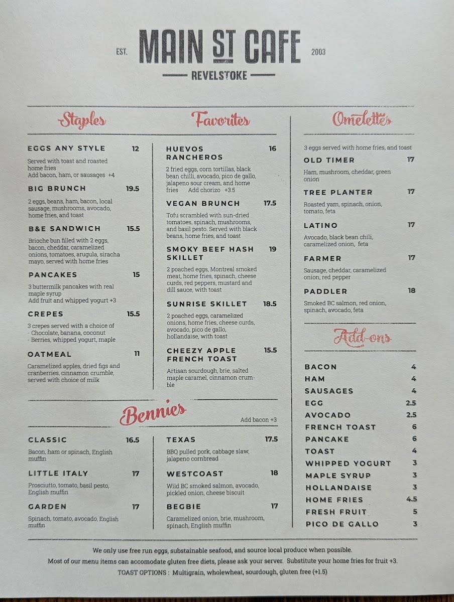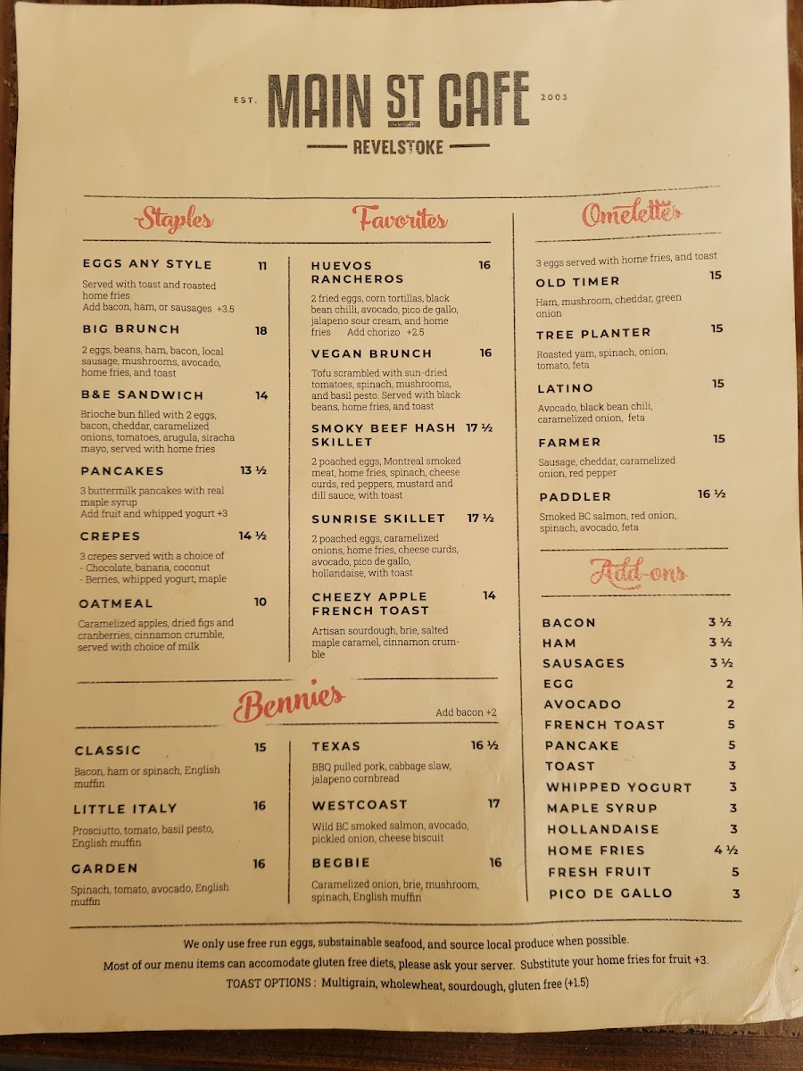 Welcome to Main Street Cafe - Revelstoke, a cozy spot nestled in the heart of Revelstoke, BC. Located at 317 MacKenzie Ave, this charming café offers a delightful menu that caters to both breakfast lovers and brunch enthusiasts. With a variety of luscious drinks including drip coffee and organic tea, your morning ritual begins here.